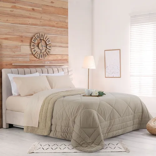 Acolchado reversible de la línea Sense Dúo, diseñado para brindar máximo abrigo, suavidad y elegancia en el dormitorio. Combina un exterior de microfibra premium con un interior de corderito ultra suave, logrando una textura confortable y muy cálida para los días fríos.