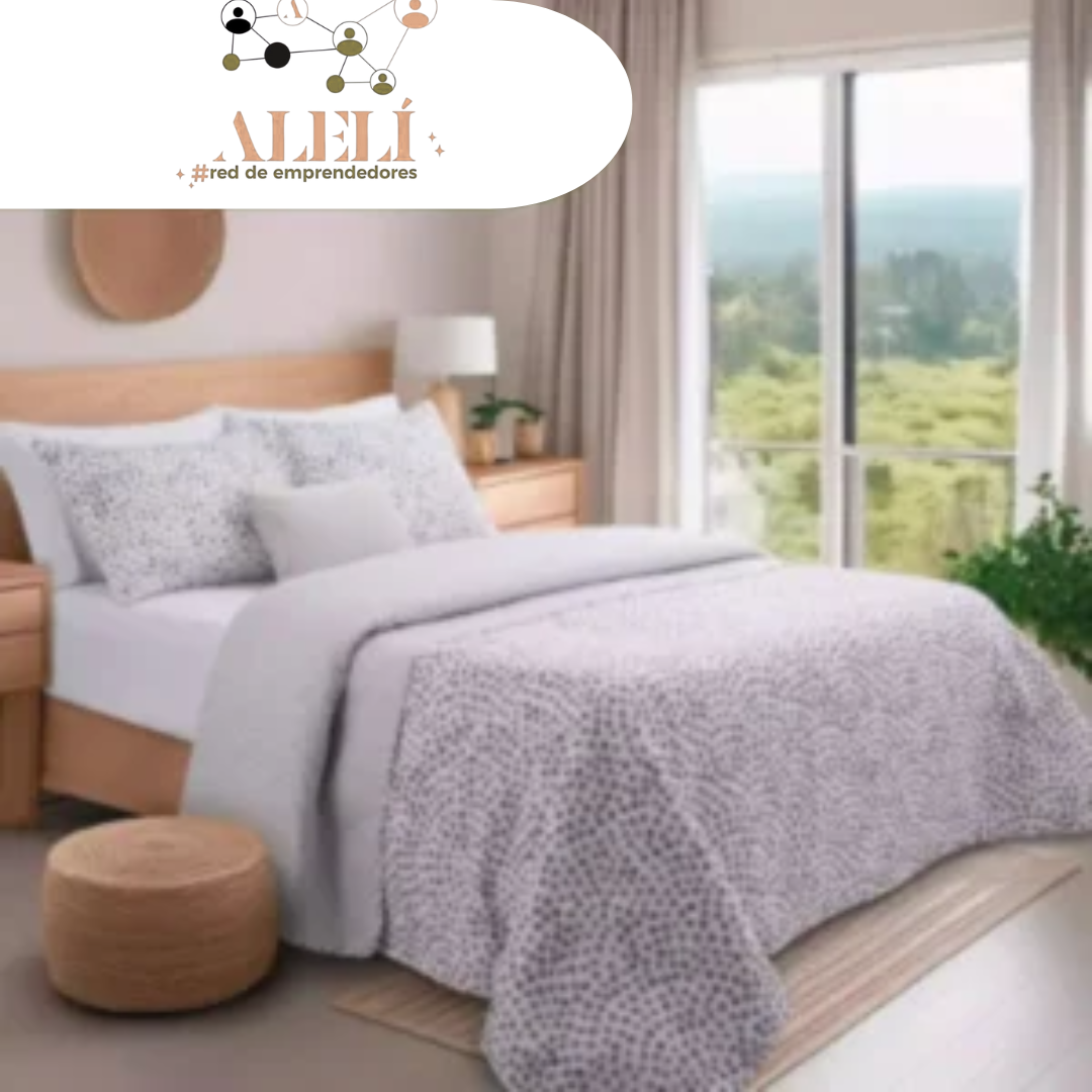 Jean Cartier . Set Zenon Max de 2 y 3 piezas estampado con microfibra en ambas caras y micromatelaseado sonic, compuesto por cover + funda/s de almohadón.